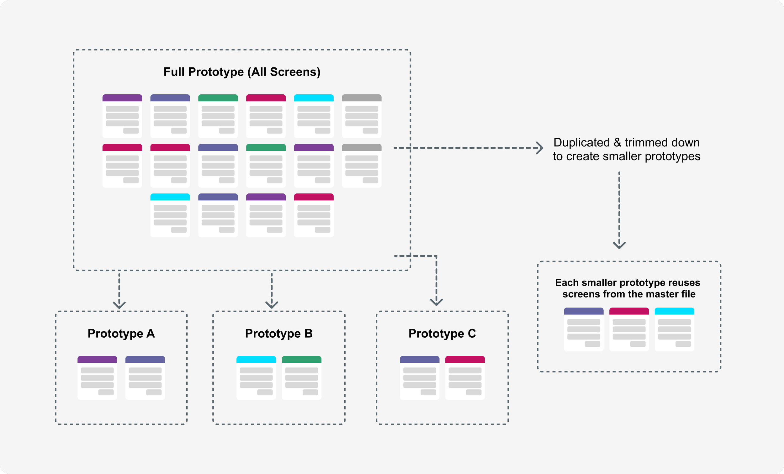 By building the largest prototypes first, I could duplicate and customize them to meet smaller use cases
